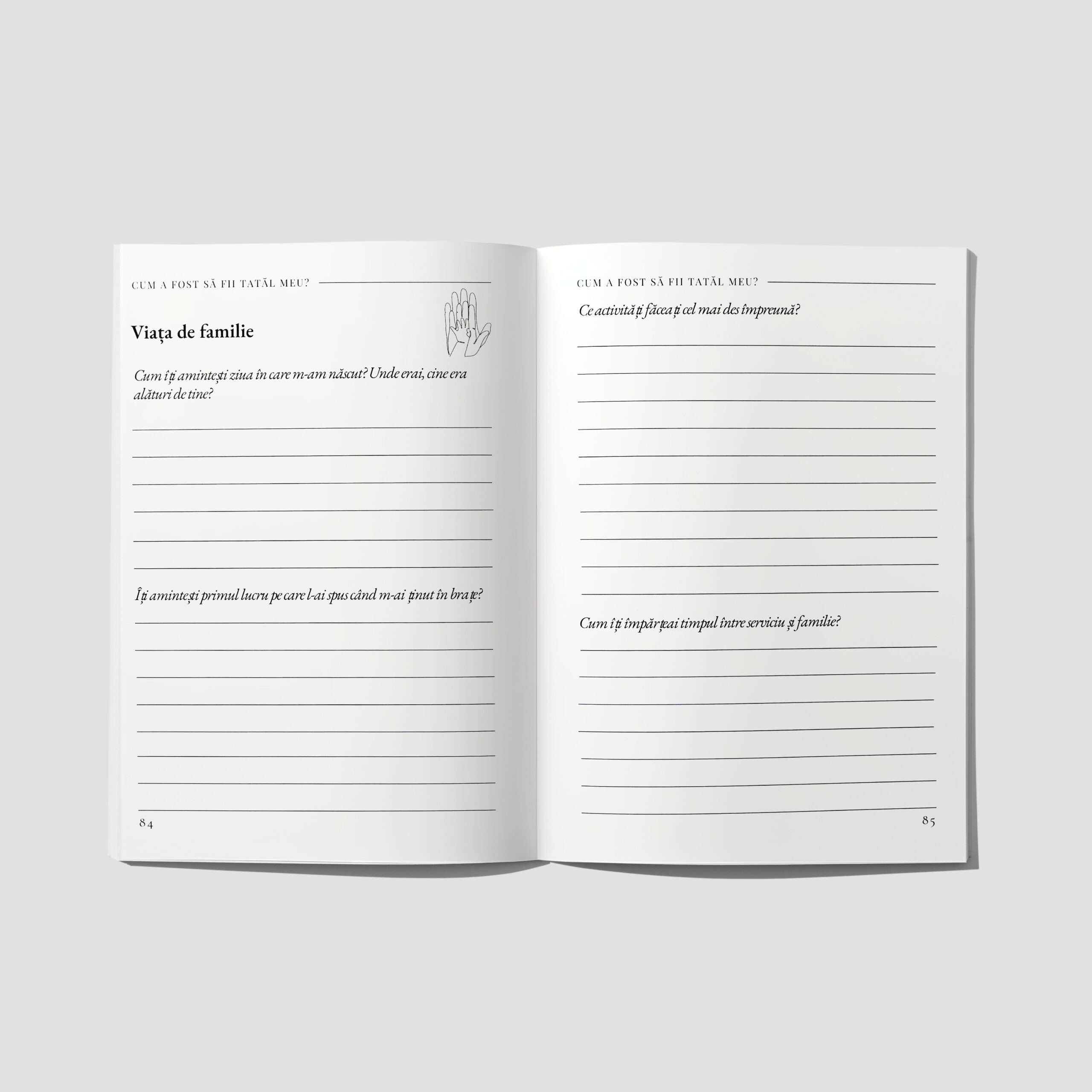 Oferim jurnale și oracole create special pentru a păstra poveștile de viață ale persoanelor dragi. Fiecare jurnal conține întrebări despre copilărie, adolescență, maturitate și vârsta de aur, transformând amintirile în daruri prețioase. Tu dăruiești, familia păstrează.
