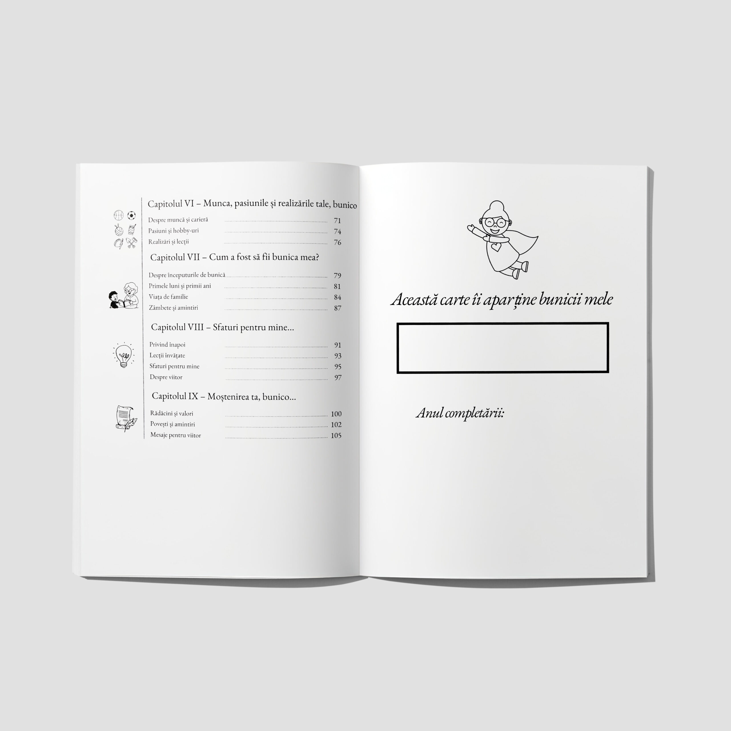 I-am facut surpriza bunicii si a zis ca nu a primit niciodata un cadou mai personal. A inceput imediat sa scrie si imi povesteste cu drag fiecare pagina. Foarte frumos concepute.